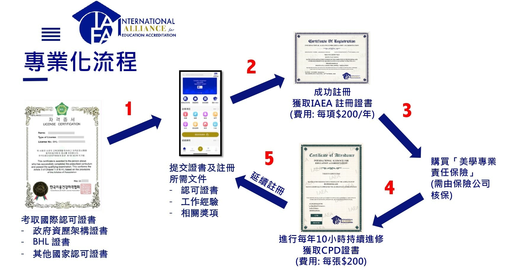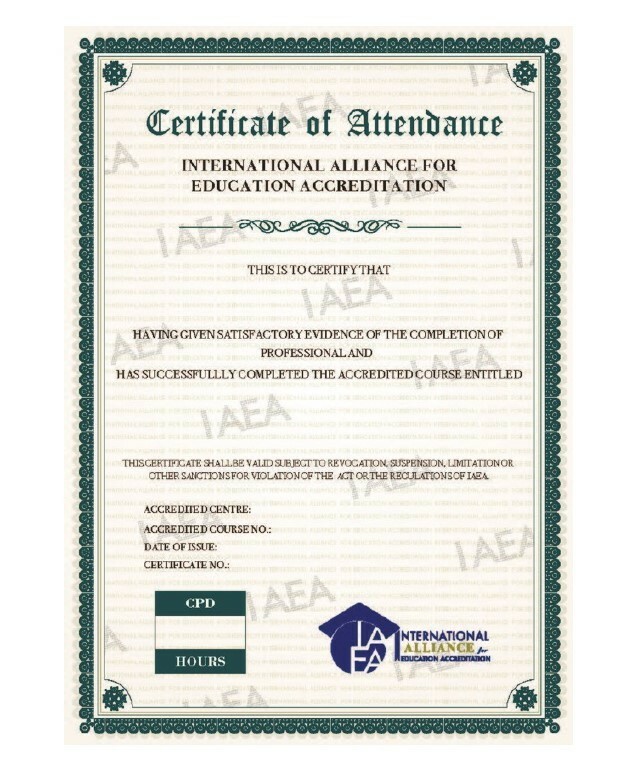 IAEA 為認可機構頒發的持續專業進修(CPD)證書,以確認學員該年度所修讀的認可課程及時數,以鼓勵註冊專業人士繼續豐富他們的專業知識和其他相關技能,有利他們在行業持續發展。